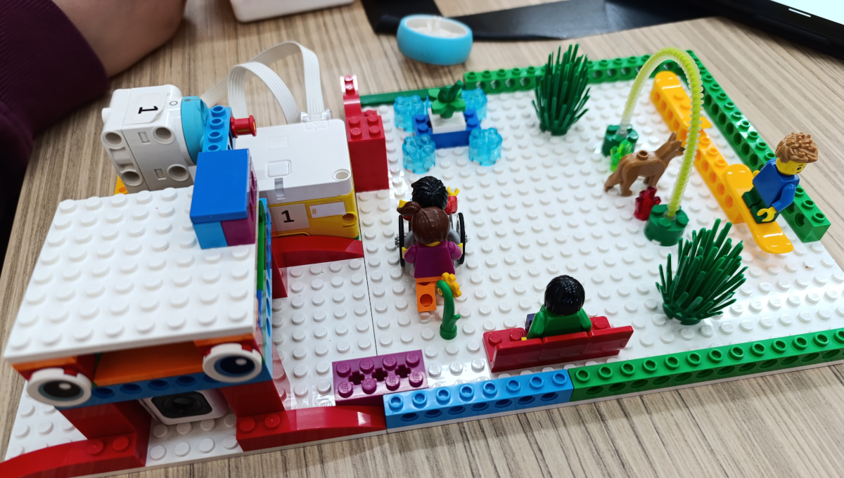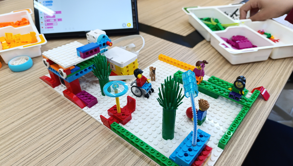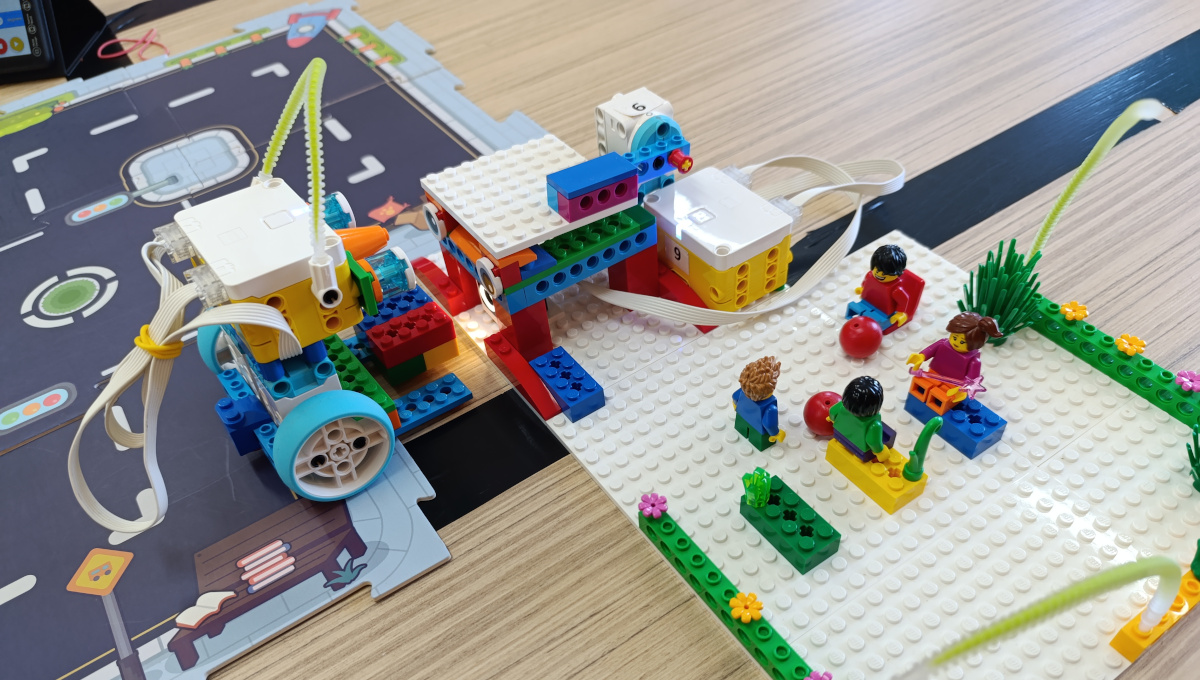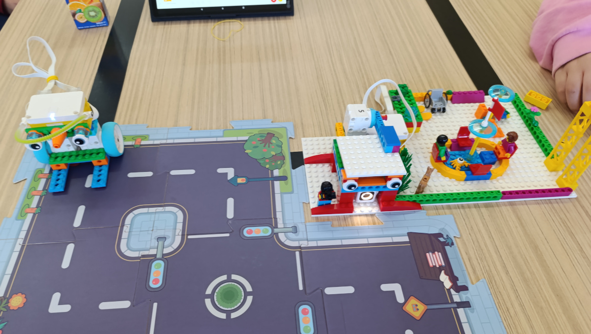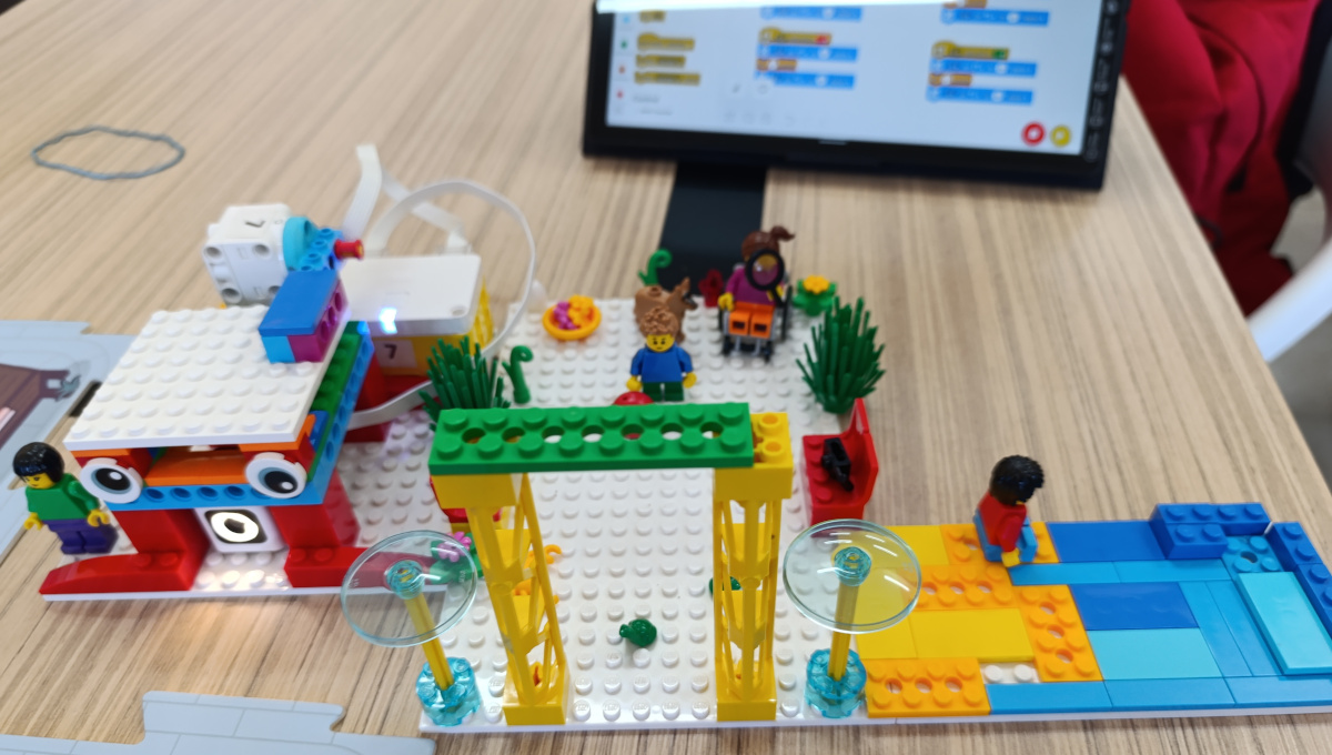 Ακολούθησε το πρακτικό σκέλος της δραστηριότητας, όπου οι μαθητές εργάστηκαν σε ομάδες χρησιμοποιώντας Lego Spike Essential, κατασκεύασαν και προγραμμάτισαν: