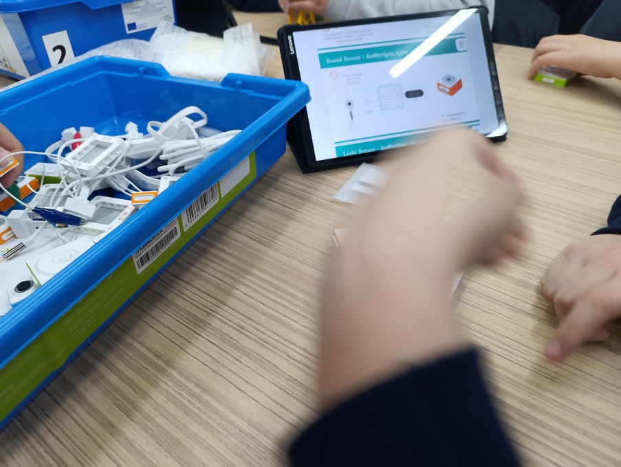 Παράλληλα, οι μαθητές εργάστηκαν με το εκπαιδευτικό πακέτο Makeblock – Creative Lab 2.0, όπου γνώρισαν από κοντά τους διάφορους αισθητήρες και τις λειτουργίες τους. Μέσα από πειραματισμό και καθοδηγούμενη διερεύνηση, ανακάλυψαν πώς οι αισθητήρες μπορούν να ανιχνεύουν κίνηση, φως ή ήχο και πώς αξιοποιούνται σε πραγματικές εφαρμογές αυτοματισμού.