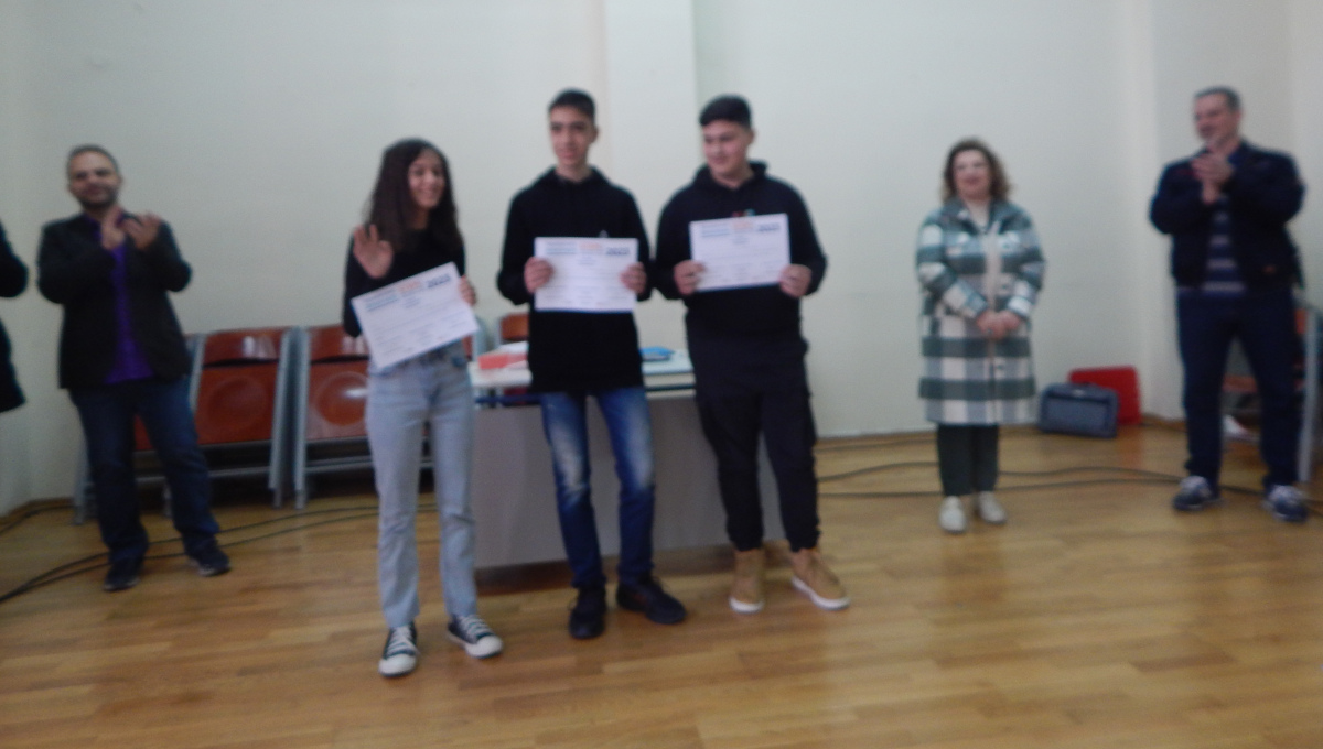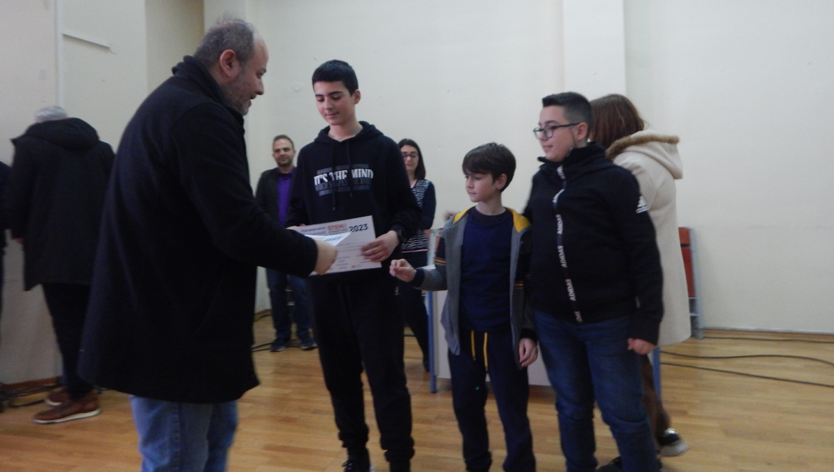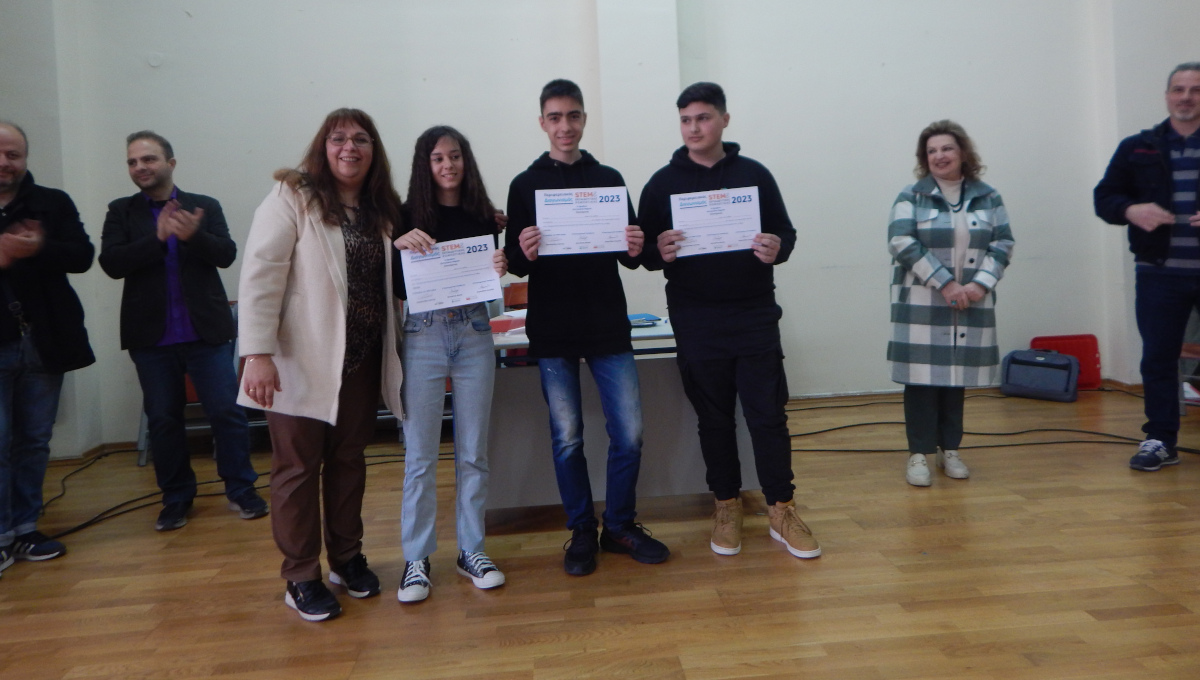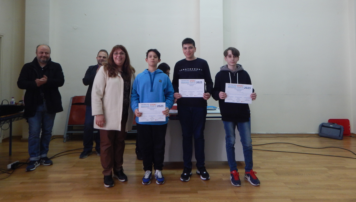 1η Θέση : Η ομάδα Robo Experts με τους μαθητές Γιαννούλα Κωνσταντίνο, Ποράβα Βασιλική και Σαρηπαπαζίδη Γιάννη του 1ου Γυμνασίου Γρεβενών