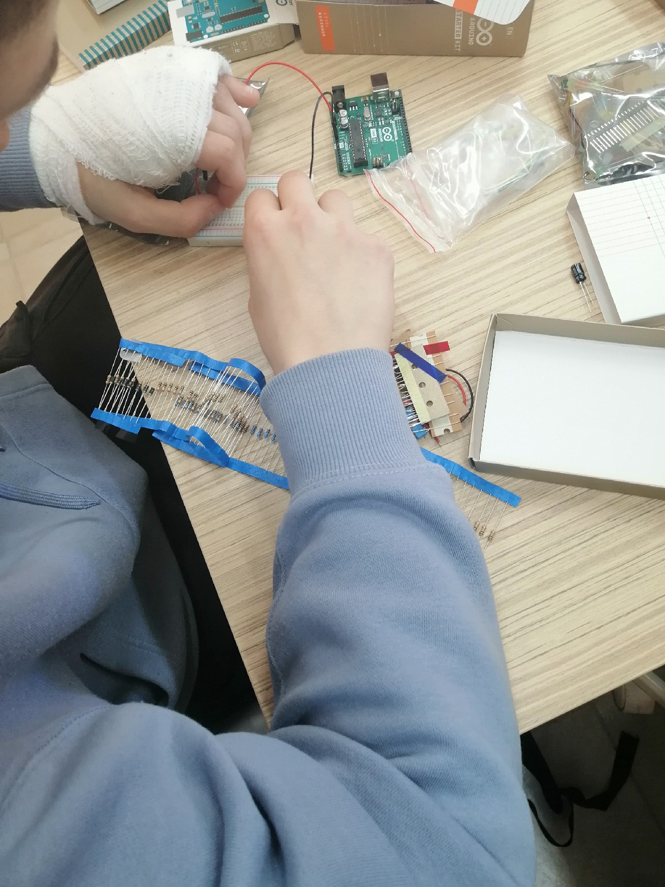 Οι μαθητές είχαν την ευκαιρία να εξερευνήσουν το πακέτο Arduino Starter Kit και να πραγματοποιήσουν απλές κατασκευές. Η συνεργασία αυτή θα συνεχιστεί με προγραμαμτισμένες συναντήσεις.