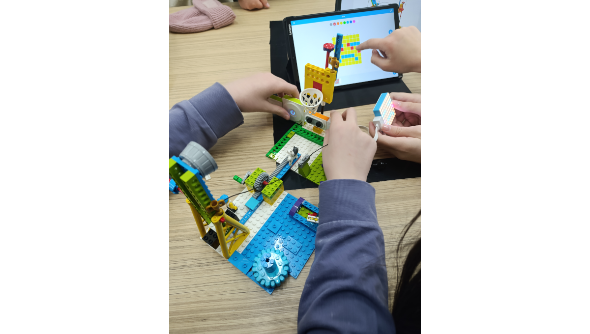 Στη συνέχεια, το ενδιαφέρον μετατοπίστηκε στον κόσμο των αυτοματισμών. Με εργαλείο το Makeblock Creative Lab 2.0, οι ομάδες εξοικειώθηκαν με τη χρήση έξυπνων αισθητήρων. Τα παιδιά πειραματίστηκαν με τεχνολογίες που ανιχνεύουν το φως, τον ήχο και την κίνηση, κατανοώντας τον τρόπο με τον οποίο οι μηχανές «αντιλαμβάνονται» το περιβάλλον τους.