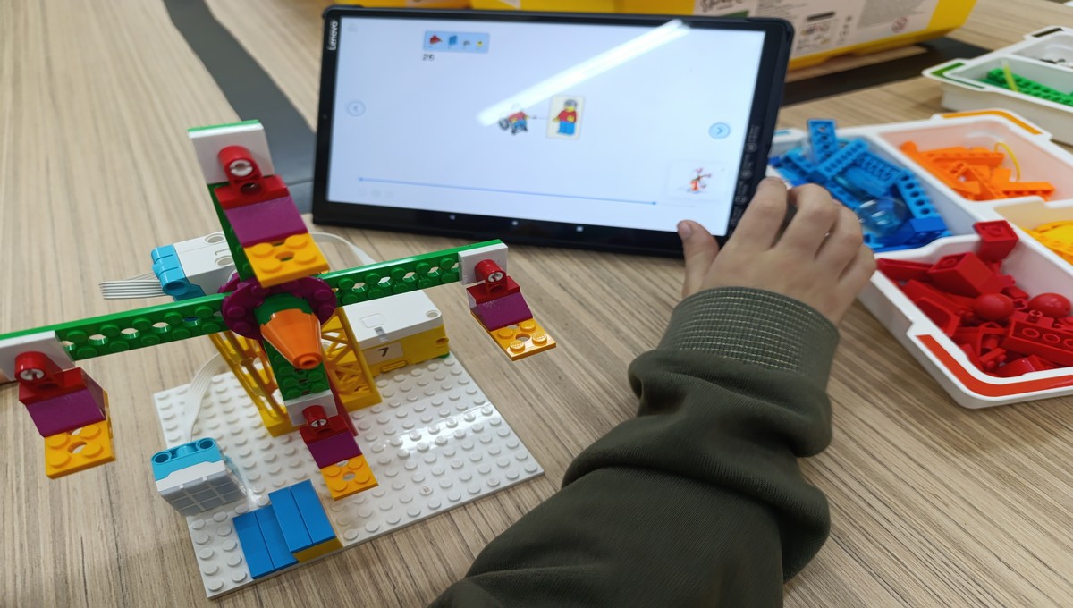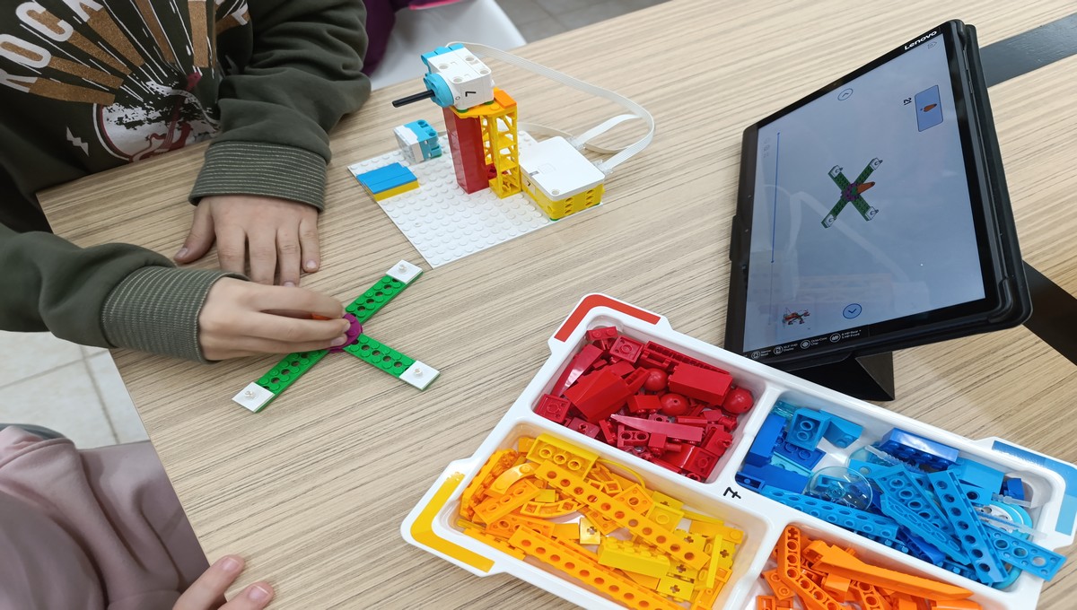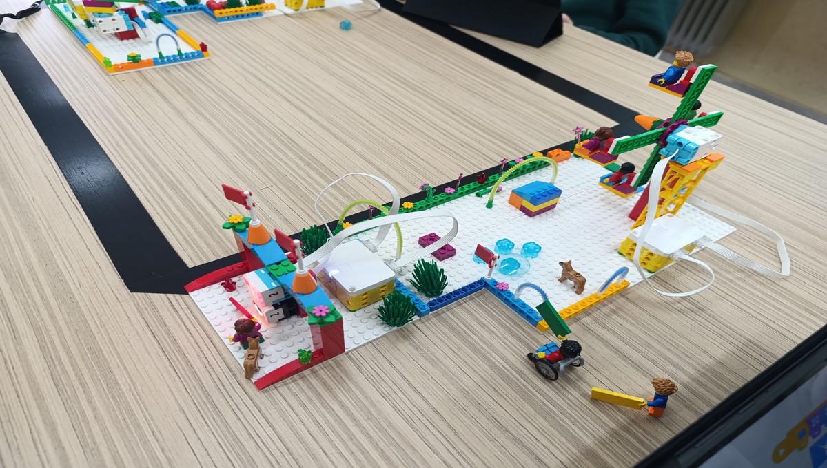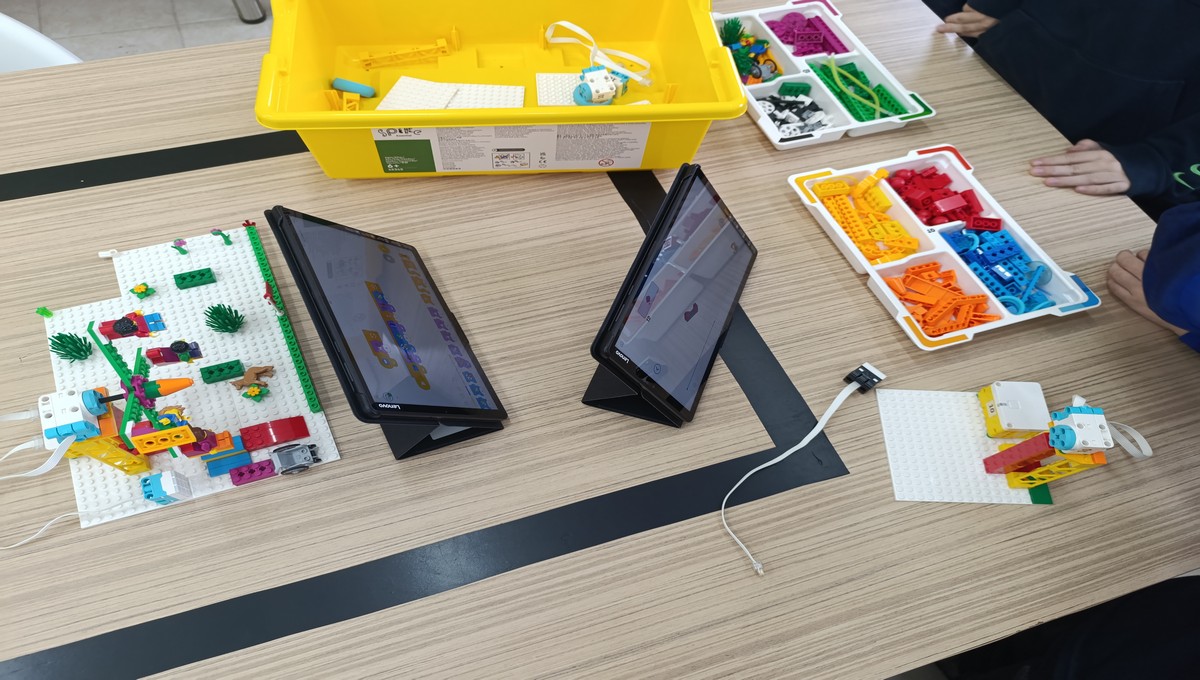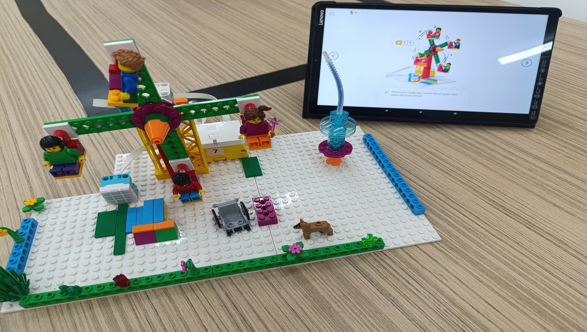 Αξιοποιώντας το εκπαιδευτικό πακέτο Lego Spike Essential, οι μικροί μαθητές μεταμορφώθηκαν σε επίδοξους μηχανικούς, δουλεύοντας ομαδικά για να κατασκευάσουν και να προγραμματίσουν τις δικές τους περιστρεφόμενες κούνιες και παιχνίδια αναψυχής.