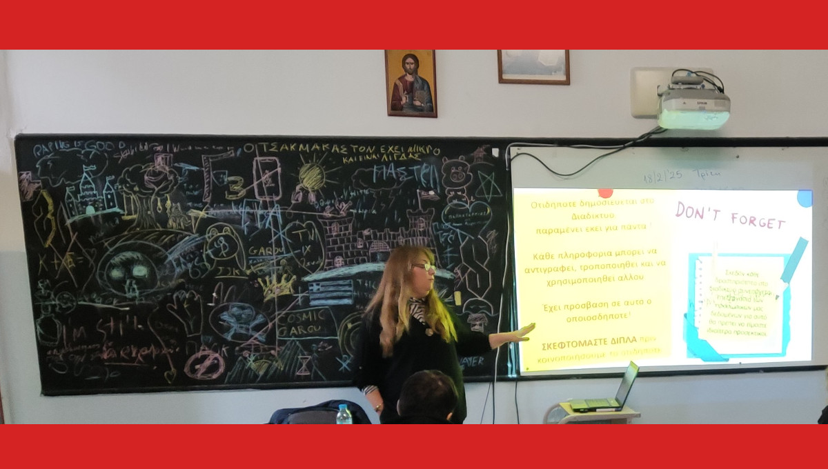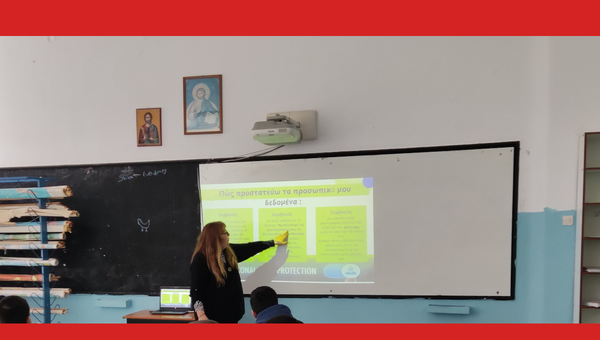 Τη Δευτέρα 17/2/15 οι μαθητές της Α' Τάξης και Β' Τάξης είχαν την ευκαιρία να παρακολουθήσουν μια παρουσίαση με θέμα "Ασφαλής Χρήση του Διαδικτύου", όπου καλύφθηκαν θέματα που αφορούσαν τους κινδύνους του διαδικτύου αλλά και τον τρόπο προστασίας από αυτούς. Την Τετάρτη 19/2/25 ο μαθητές της Γ' Τάξης είχαν την ευκαιρία να πάρουν μλέρος στη δράση με τίτλο “Ασφαλής Πλοήγηση: Πριν δημοσιεύσεις, Σκέψου!”, όπου καλύφθηκαν θέματα που αφορούσαν την προστασίας της ιδιωτικής ζωής και των προσωπικών δεδομένων μέσα από ένα βιωματικό παιχνίδι.
